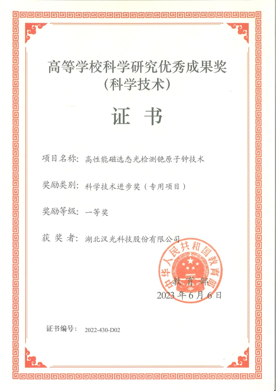 近日,公司收到了由教育部頒發(fā)的“高等學(xué)校科學(xué)研究優(yōu)秀成果獎(科學(xué)技術(shù))證書”。公司與北京大學(xué)聯(lián)合研發(fā)的“高性能磁選態(tài)光檢測銫原子鐘技術(shù)”榮獲教育部科學(xué)技術(shù)進(jìn)步獎(專用項目)一等獎。