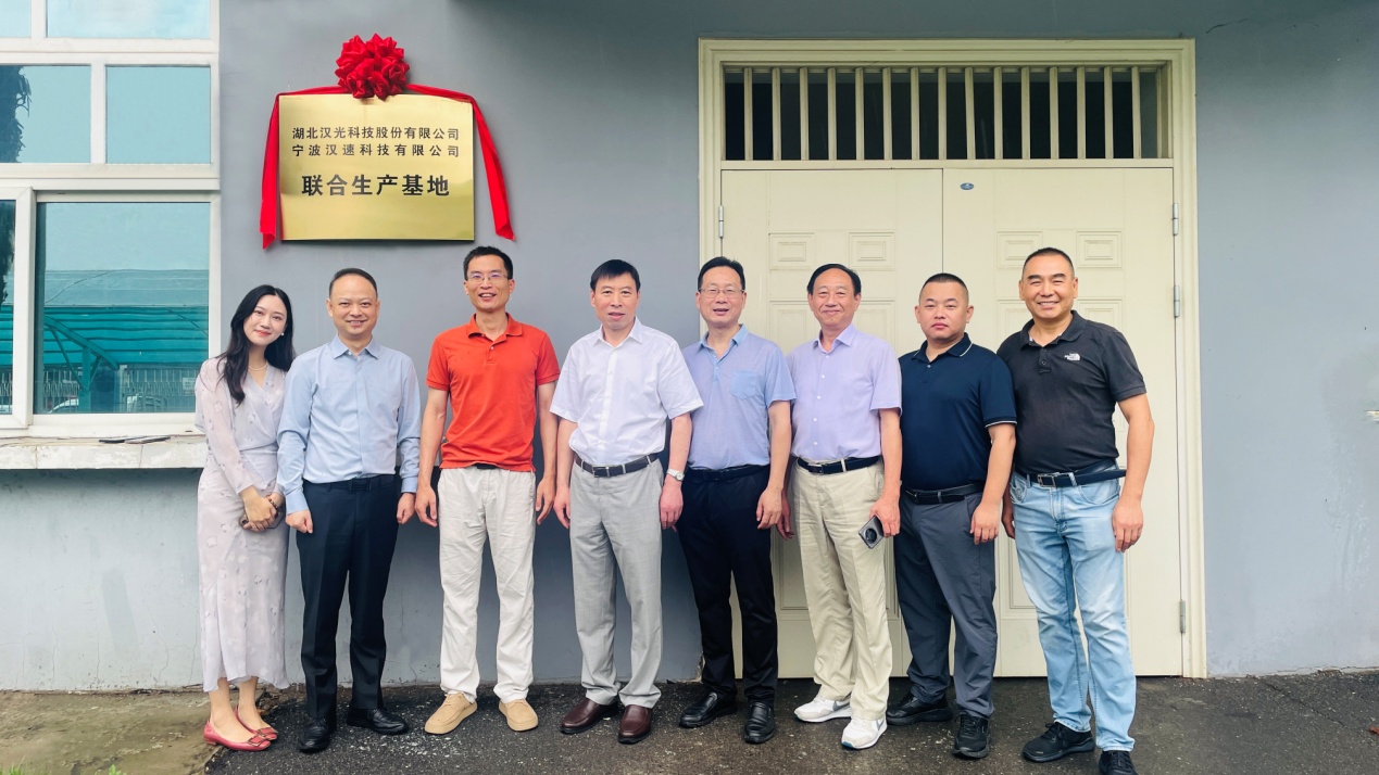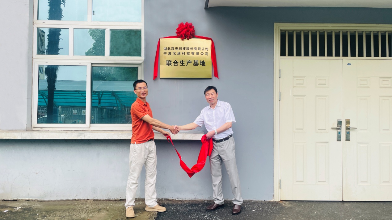 6月26日,湖北漢光科技股份有限公司·寧波漢速科技有限公司聯合生產基地在公司掛牌成立。公司董事長梅祖軍和寧波漢速董事長曹留烜為聯合生產基地揭牌。