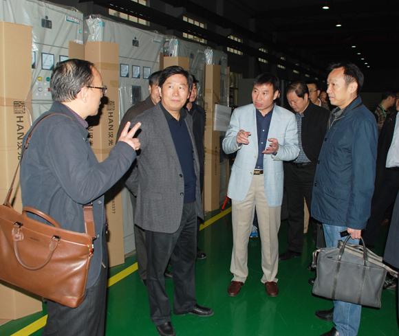 漢光電氣公司總經理鄭連喜、漢光光電公司執行總經理慕斌軍等陪同調研。(葉幼偉)