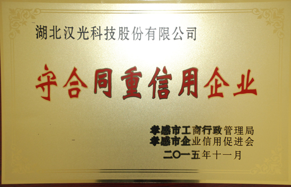 2016年3月2日,我公司獲得孝感市“守合同 重信用”企業榮譽稱號。該評選活動由孝感市工商行政管理局、孝感市企業信用促進會主辦。