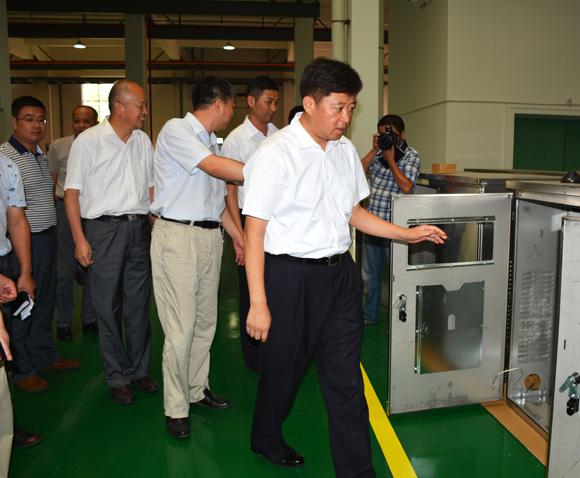 滕剛市長(前)在漢光電氣公司調研。