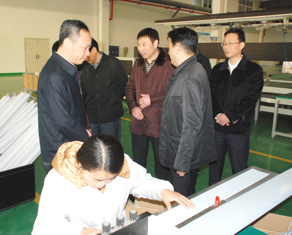 2017年2月16日,在市經(jīng)信委主任王洪波等人的陪同下,孝感市副市長王世榮一行來我公司產(chǎn)業(yè)園調(diào)研,先后參觀了漢光電氣生產(chǎn)線、漢光光電生產(chǎn)線和LED照明產(chǎn)品展示廳等,公司董事長梅祖軍、執(zhí)行總經(jīng)理張文杰向領(lǐng)導(dǎo)們介紹了我公司的生產(chǎn)經(jīng)營情況以及公司所面臨的困難。